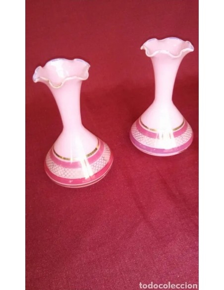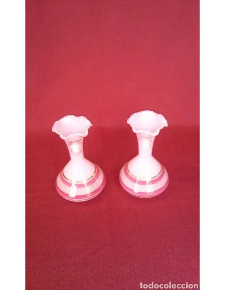 Pareja de jarrones de opalina, color rosa