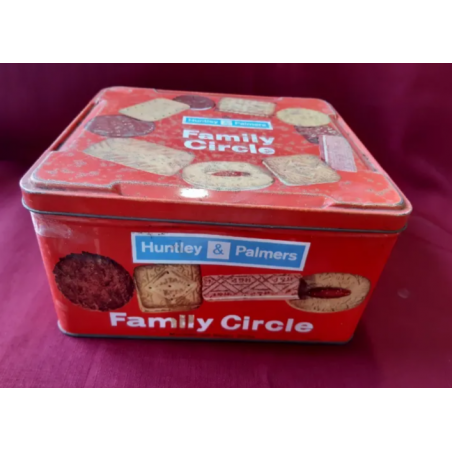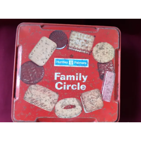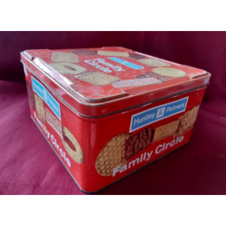 Caja metalica, antigua, galletas FAMILY CIRCLE de HUNTLEY PALMERS, England