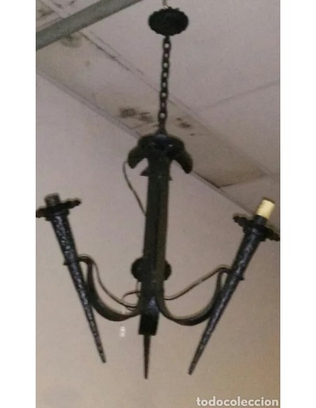 Lámpara de forja. Tres bombillas. Precisa instalar dos portalámpara.