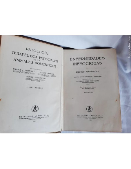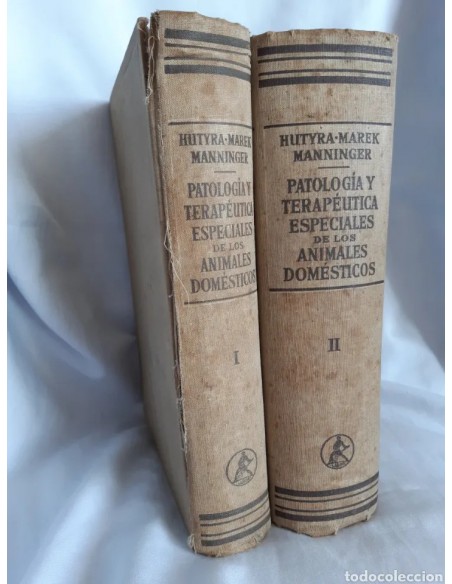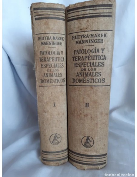 Dos tomos, I y II, de Pagología y Terapeutica Especiales de los Animales Domésticos por los doctores Hutyra, Marek y Manninger. Editorial Labor, s.a., año 1950 octava edición.