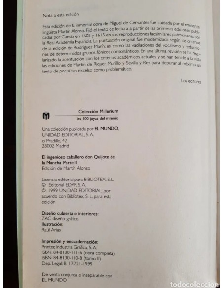 DON QUIJOTE DE LA MANCHA, parte II, Miguel de Cervantes, prólogo de Umbral