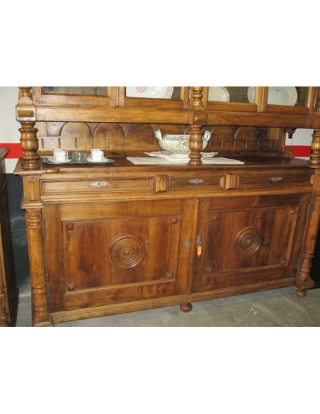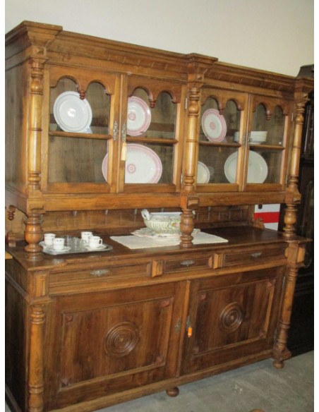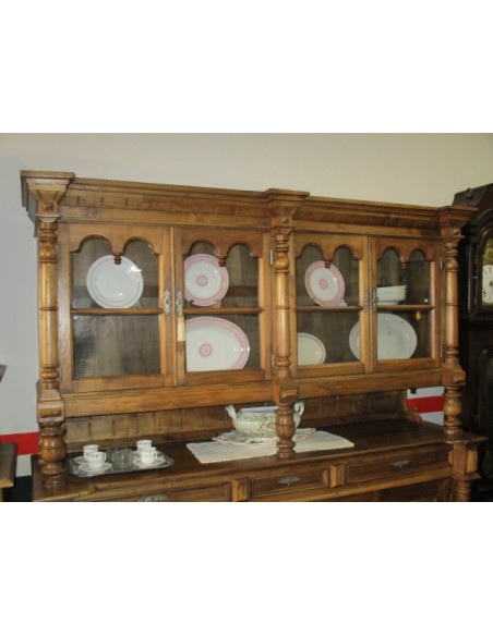 Antigua cristalera en madera de castaño, restaurada y apta para colocar y utilizar.