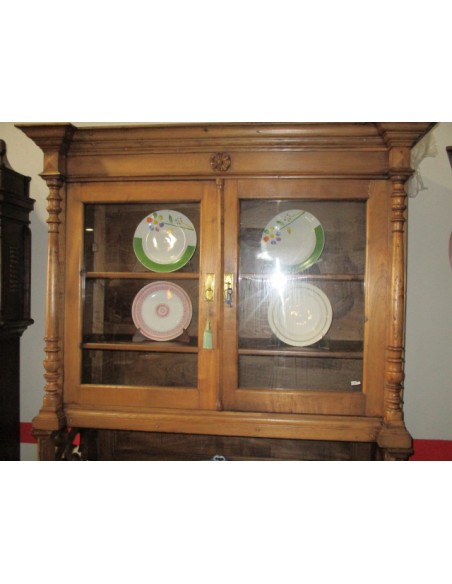 Antigua cristalera en madera de castaño, restaurada y apta para colocar y utilizar.
