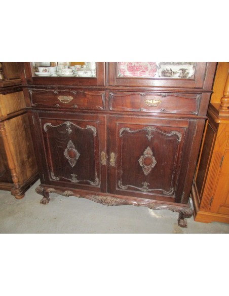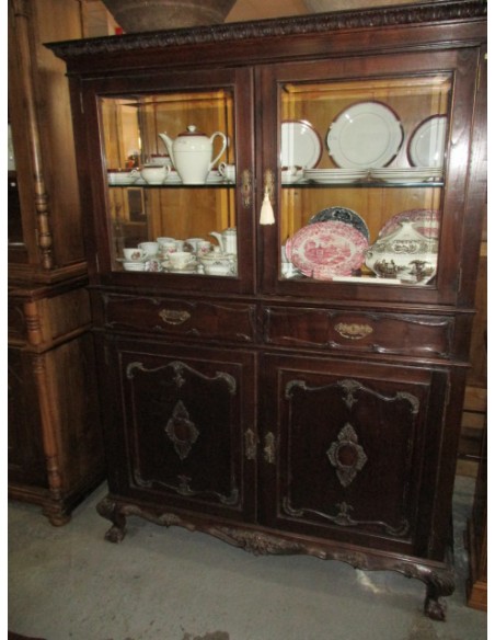 Antigua cristalera / vitrina en madera de castaño, restaurada y apta para colocar y utilizar.