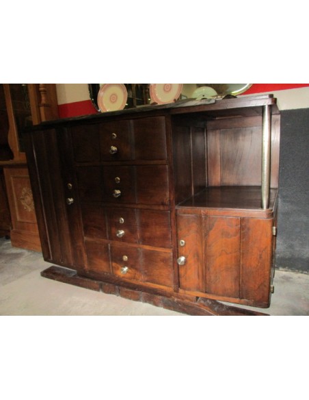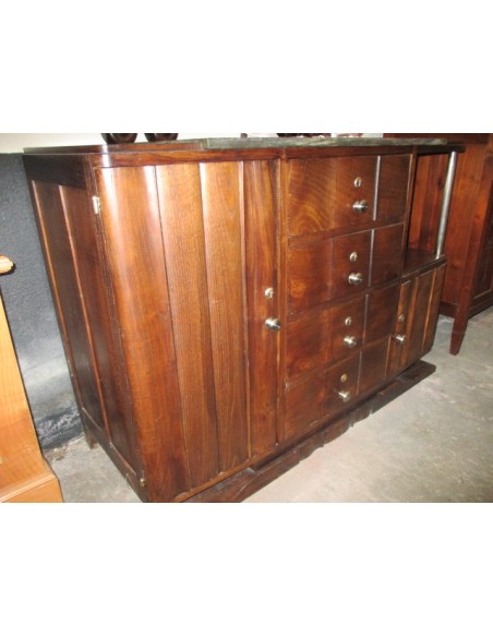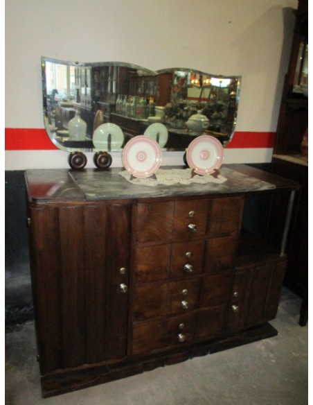 Aparador "art decó" en madera de castaño con espejo, restaurado y apto para colocar y utilizar.