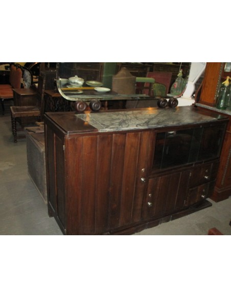 Aparador "art decó" en madera de castaño con espejo, restaurado y apto para colocar y utilizar.
