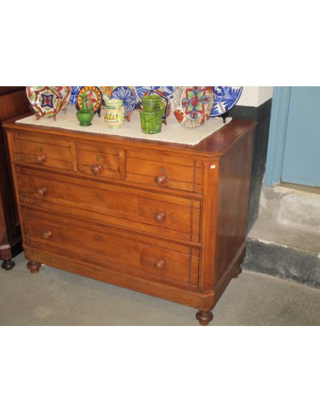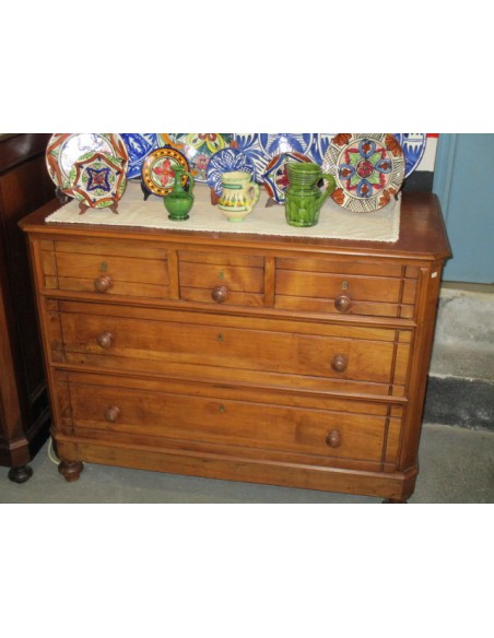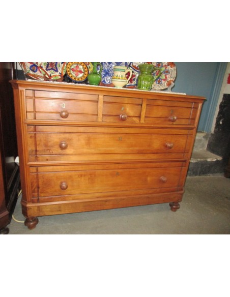 Antigua cómoda, cajonera, en madera de cerezo e interiores de castaño. 5 cajones.