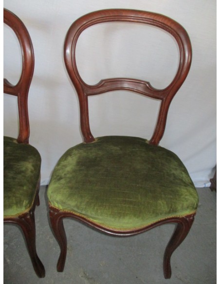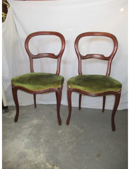 Antiguo par de sillas en madera de teca, tapizados de terciopelo con muelles.