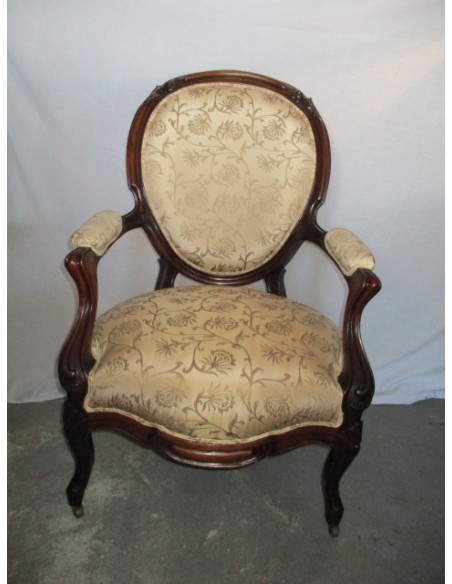 Antigua silla de brazos en madera de viñático, tapizado con muelles.