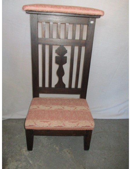 Antiguo reclinatorio o silla de Iglesia, tapizado en tonos rosa.