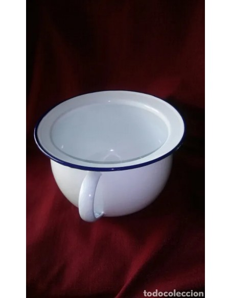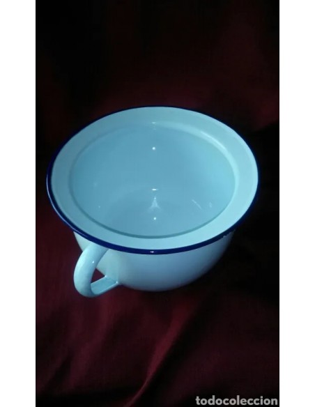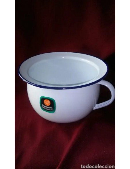 Orinal esmaltado de fábrica "Esmaltaciones San Ignacio", SIN USAR, todavía conserva etiqueta pegatina (ver fotos). Medidas: diámetro boca, 22 cm. Altura 12,5 cm.