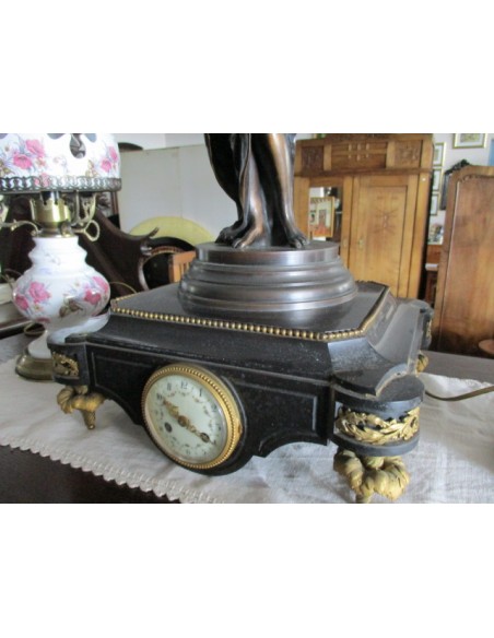 Antiguo reloj de sobremesa con figura en bronce, completo y funcionando.