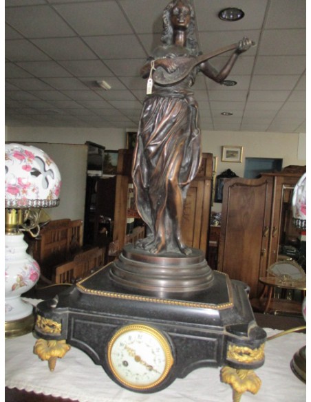 Bonito reloj de sobremesa con figura en bronce, antiguo, completo y funcionando.