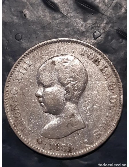Moneda antigua, 5 pesetas Alfonso XIII, año 1889